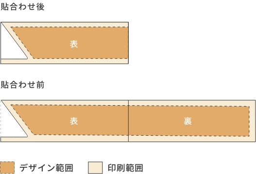 テンプレート内に印刷可能範囲・デザイン範囲を記載しております。デザイン範囲内に文字やイラストが収まるように配置してください。その他、注意点は「入稿データの作成」ページをご参照ください。
