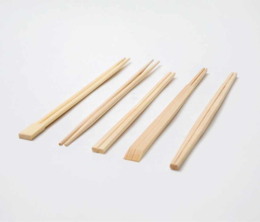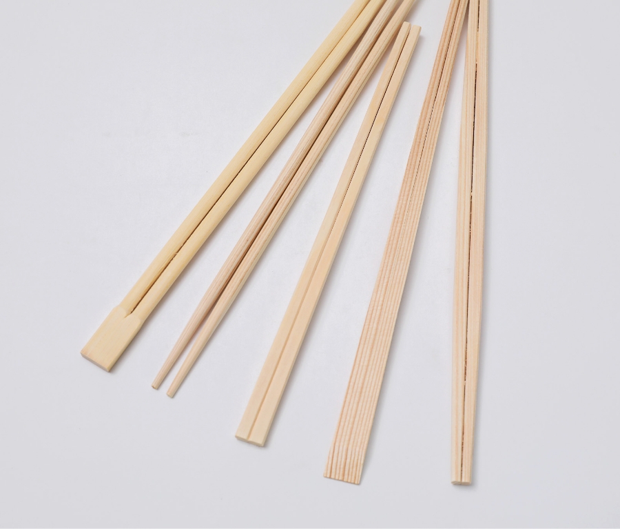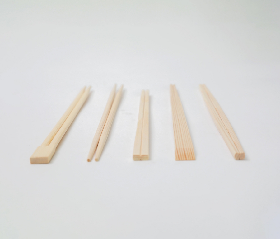 持ち手部分の先端が斜めにカットされた杉の箸。食品に触れる部分も細く、繊細に仕上げられており、シャープな印象を醸し出します。